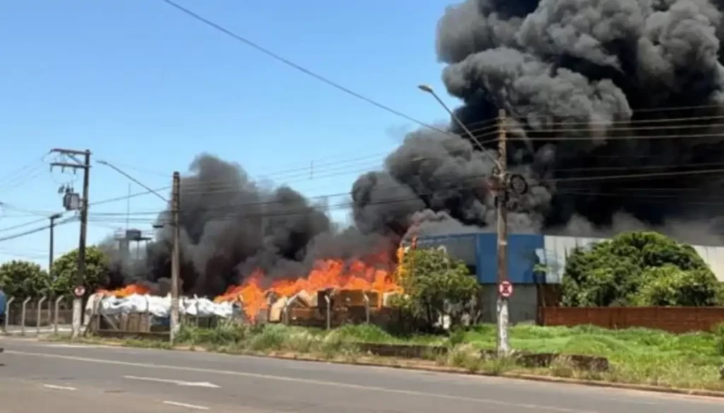 Incêndio em loja de pneus mobiliza equipes e gera fumaça intensa